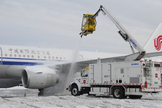 飛機(jī)除冰特種作業(yè)車(chē):在寒冷的北方冬季,覆蓋在飛機(jī)表面的積雪很容易結(jié)冰,在飛機(jī)起飛前,必須進(jìn)行除冰的工作。從事這種工作的師傅被稱(chēng)為“除冰師”。