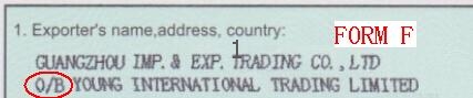 在實際中,兩個都在用,一般不做區(qū)分。有的代理用O/B,有的代理用VIA,產(chǎn)地證的簽發(fā)機構(gòu)(一般是CIQ——商檢局)也不去管這個事情。