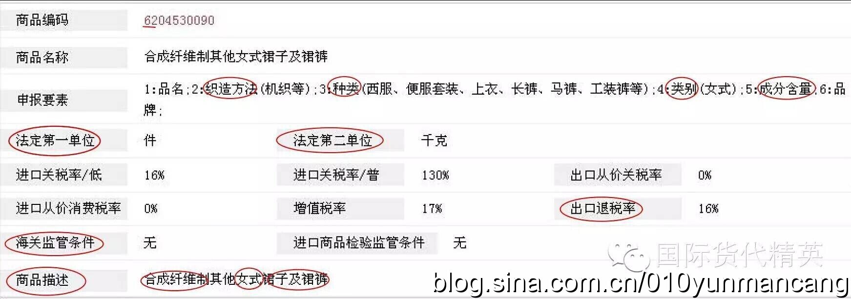 4)下面以HS編碼6204530090為例。說明申報要素的基本要求和申報技巧。