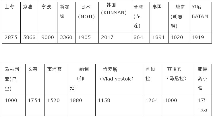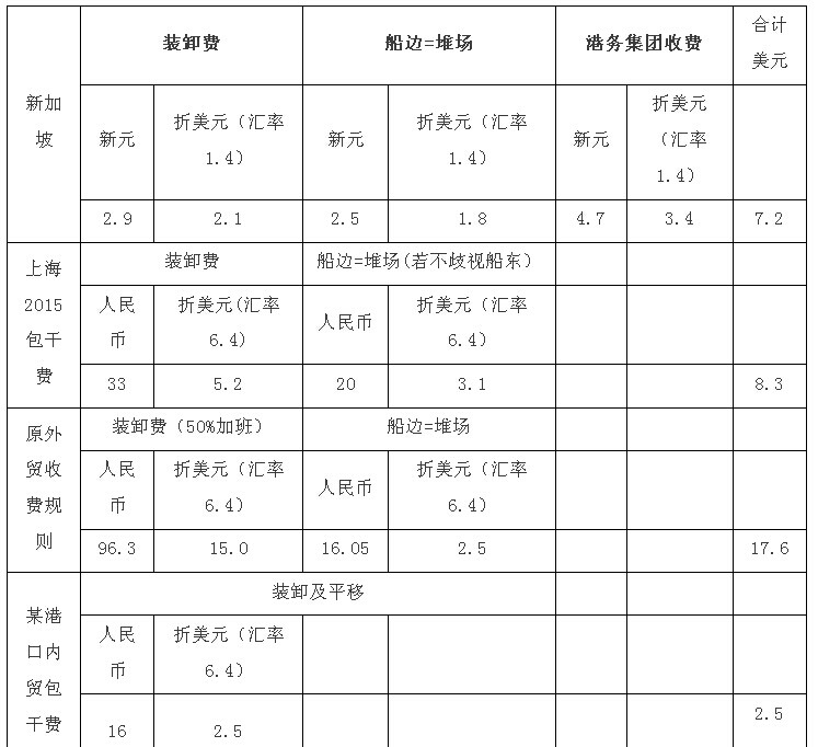 從上表對比可以見,上海港的2015年包干裝卸費(fèi)已趨合理,盡管比新加坡稍高,但是提供港方機(jī)械,裝卸速度大為提高。當(dāng)然,新加坡的裝卸費(fèi)是很貴的,比臺灣、韓國貴得多,是泰國、越南的2-3倍。