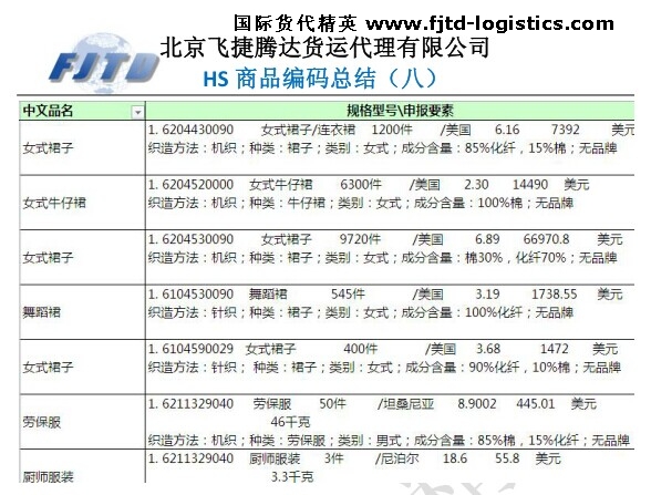 1.  6204520000女式牛仔裙6300件/美國2.3014490美元