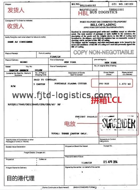 4)空運提單會隨著飛機飛走,屬于“隨機文件”的一部分??者\貨物到了目的港之后,收貨人或其代理會有一個“調(diào)單”的過程,所謂“調(diào)單”就是去指定的地方把隨飛機從起運港運過來的空運提單等單據(jù)“調(diào)”出來,只有拿到空運提單等“隨機文件”之后,才可以開始清關。而海運提單不會隨船運走,海運提單只能給發(fā)貨人,發(fā)貨人再通過“交單結(jié)匯”然后收貨人“付款贖單”(L/C信用證條款時)或通過國際快遞等途徑流轉(zhuǎn)到收貨人手上,收貨人憑提單辦理清關、提貨等手續(xù)。當然,如果提單做“電放”,就沒有正本提單了,也就無需快遞。