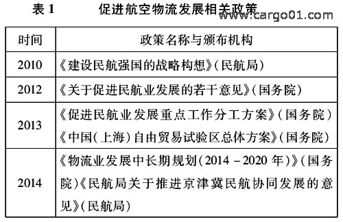 近年來,國務院、民航局和各地政府不斷出臺鼓勵航空物流發(fā)展的政策,極大促進了中國航空物流業(yè)的發(fā)展(見表1)。