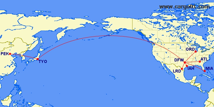 航線:PEK(北京)-TYO(東京)-DFW(達(dá)拉斯/沃斯堡)