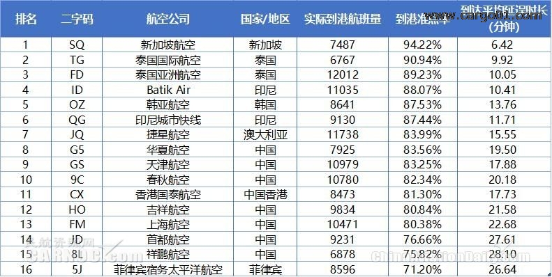 7月亞太區(qū)中型航司到港準(zhǔn)點(diǎn)率排名中,新加坡航空以94.22%的到港準(zhǔn)點(diǎn)率超過(guò)泰國(guó)國(guó)際航空,重回準(zhǔn)點(diǎn)率榜單首位,其到達(dá)平均延誤時(shí)長(zhǎng)6.42分鐘。中國(guó)大陸地區(qū),華夏航空憑借83.56%的到港準(zhǔn)點(diǎn)率排在第8位,成為亞太區(qū)中國(guó)大陸最準(zhǔn)點(diǎn)的中型航空公司。
