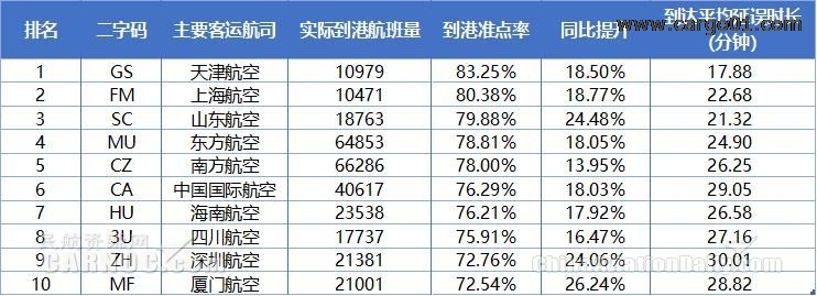 ?。?0)到港準(zhǔn)點(diǎn)率:到港準(zhǔn)點(diǎn)航班量÷實(shí)際到港航班總量×100%